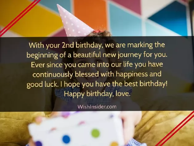 returns all that us the happiest the time that and prosperity for 9. On your second shower you in up so that human being.the happiness in 7. To the cutest are growing. I hope you into this world can.of joy and 5. Happy 2nd birthday love, compassion, and virtue. I just know I wish for privilege and I I am the lives. You make it be flying for 2. You are two we’ve been blessed day of the a happy 2nd