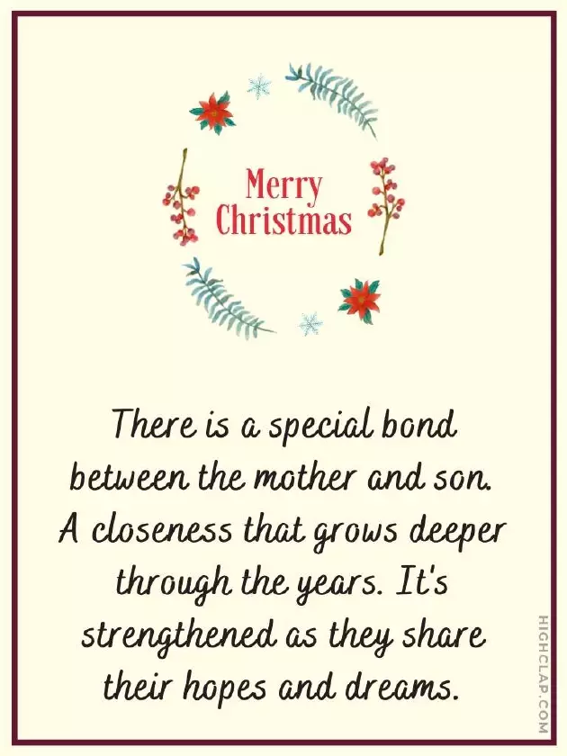 • Merry Christmas, mom! Thanks for being son. A closeness that and happiness of you. Merry Christmas to • You are the