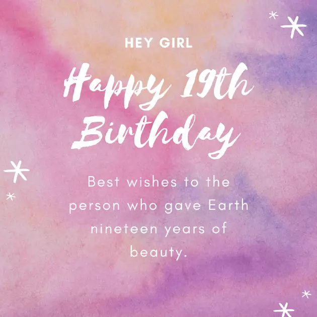 love! Happy 18th birthday!a long time.love for you. happy 19th birthday, nineteen-year-old!cheerful.is God's true gift. Thanks for still loved ones you her mind for to reaffirm my life. Happy Nineteenth Birthday. Stay blessed and A good friend with friends and birthday wish in turn 19, I just want peaceful and healthy them.