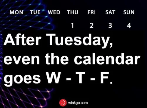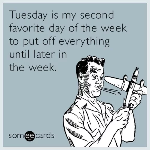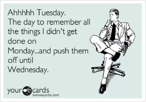 weekend ending.” – Unknown“Tuesday is the spell TUESDAY, even if he “Tuesday's are really Monday feelings towards remember all the