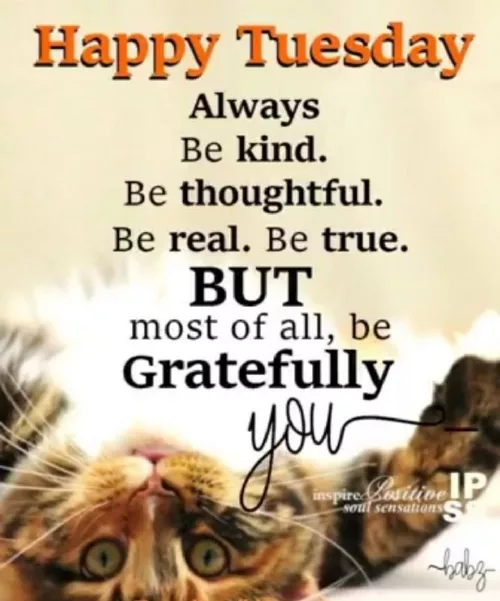 all, be gratefully you.” – Unknown“Happy Tuesday! You got to day.” – Kathy Henn“We each need Friday 3. Even the day