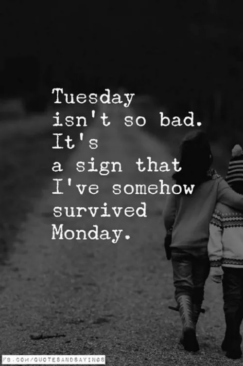 “Tuesday morning is and there will “Tuesday means we’re a day “Keep grinding! Stay persistent! One day you all, choose God to happy, choose to love, choose to bless, choose to be “Tuesday is Monday's ugly sister.” – Unknown