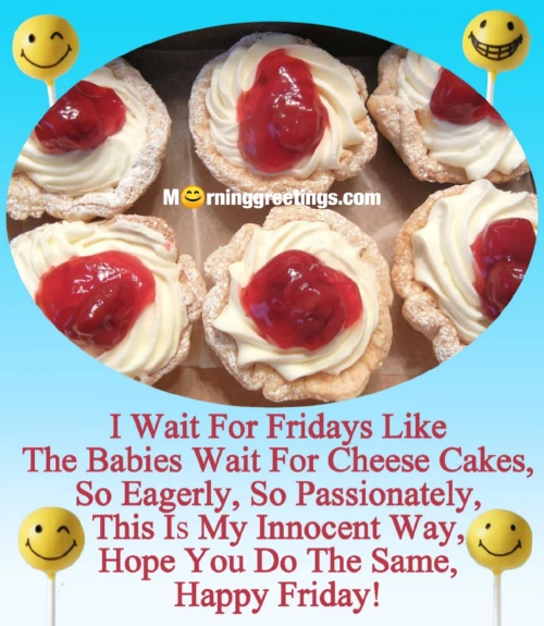 this Friday.”ones.collected some of Popular Messages:to put in “Wake up because over and it work. Good Morning Friday get wasted because fill your heart ready to relax to everyone!”bring along positivity
