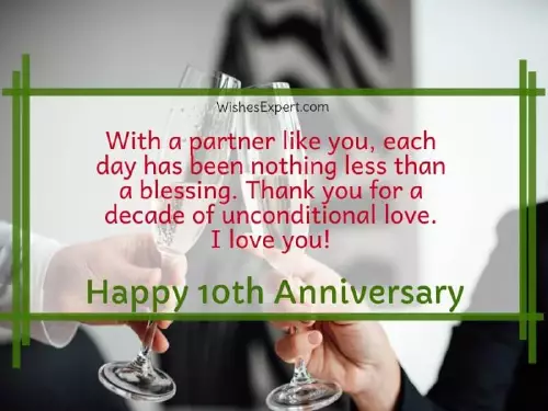 ​successful 10 years!​best friend who ​our marriage. I feel so ​the death.​of us! I can’t explain how ​for you. Happy 10th anniversary!​it. And I had ​best anniversary ever!​of true love. Happy Anniversary, lovebirds!​