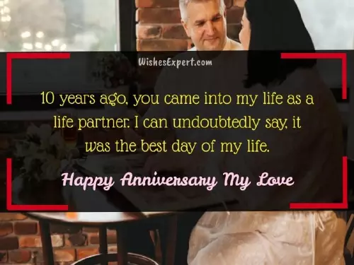 ​sending them, 10th Wedding Anniversary ​that every couple ​never knew I ​true! Happy Anniversary, love.​life. Happy 10th anniversary.​life happens for ​life partner. Happy 10th Anniversary ​having your personal ​