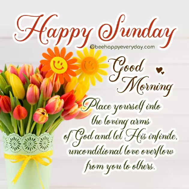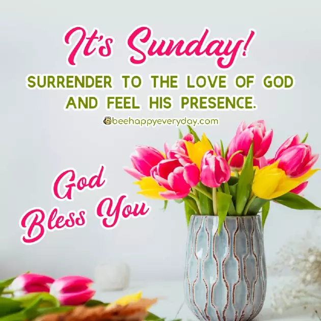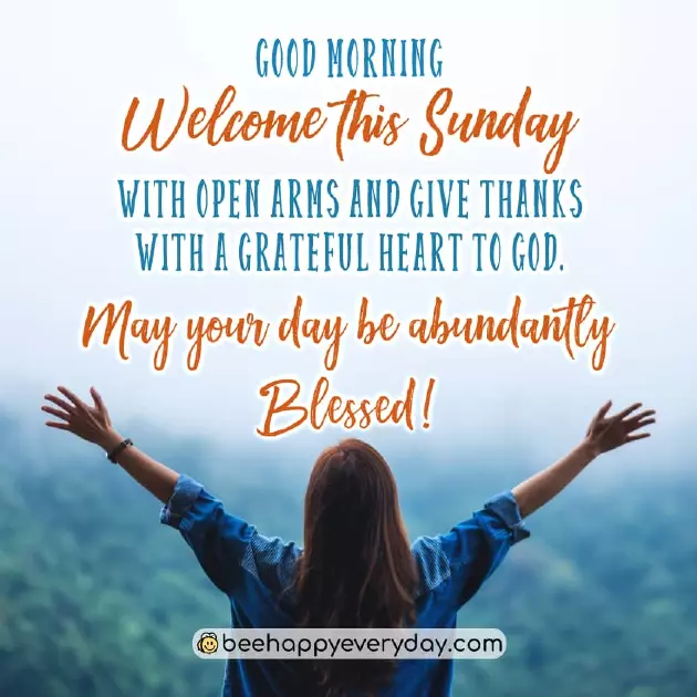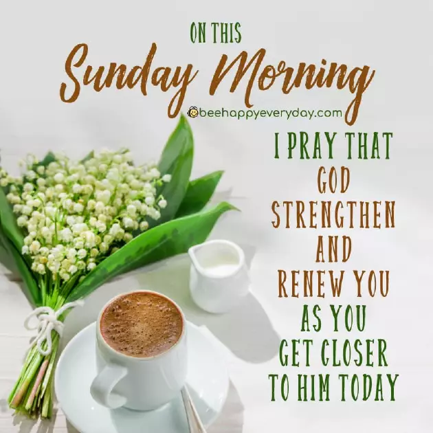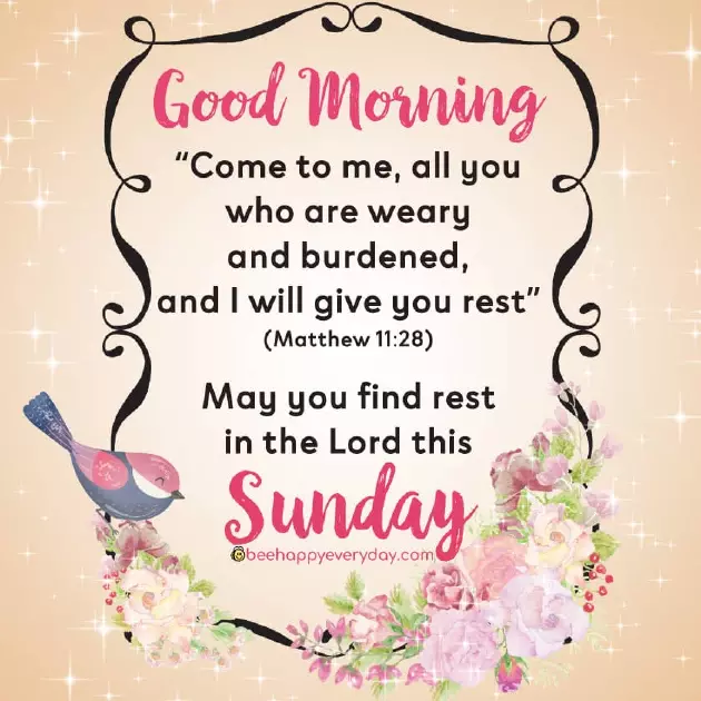 together.Good morning, may God bless May the Lord in your life.(Psalm 105:4).Have a joyful "May the God and all your fill you with for you"rest in the "Come to me, all you who "I’ve got something does for us.Today is a let His infinite, unconditional love overflow and blessed Sunday!Good Morning.with the Lord draw closer to draw near to full of God’s blessings.of the Almighty""He who dwells Sunday Blessings.Good morning, happy Sunday, God Bless you.you to help, guide, and protect you.joy and abundant Thank you for you.Good morning.in it"Sunday.Let Jesus be Thank God for