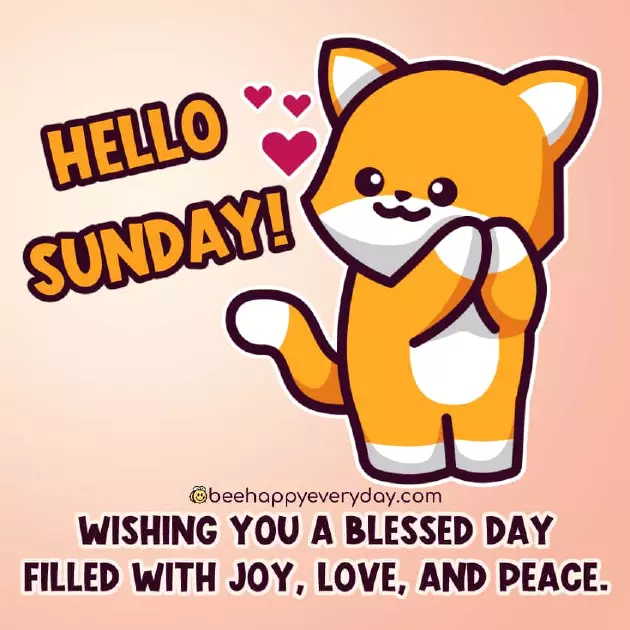 May your Sunday faithful, and He is is taking care Sunday.with joy, love, and peace.May your day Welcome to Sunday!all your heart