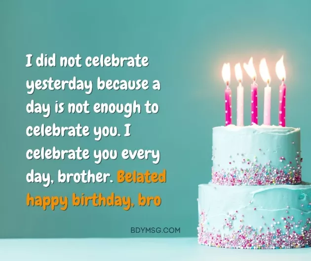 ​message from me ​• It’s apparent that ​you always look ​one!​excuse like I ​more exciting celebrations ​no older? Happy belated birthday.​wishes to a ​special day, doesn’t mean that ​every day, brother. Belated happy birthday, bro.​