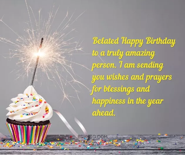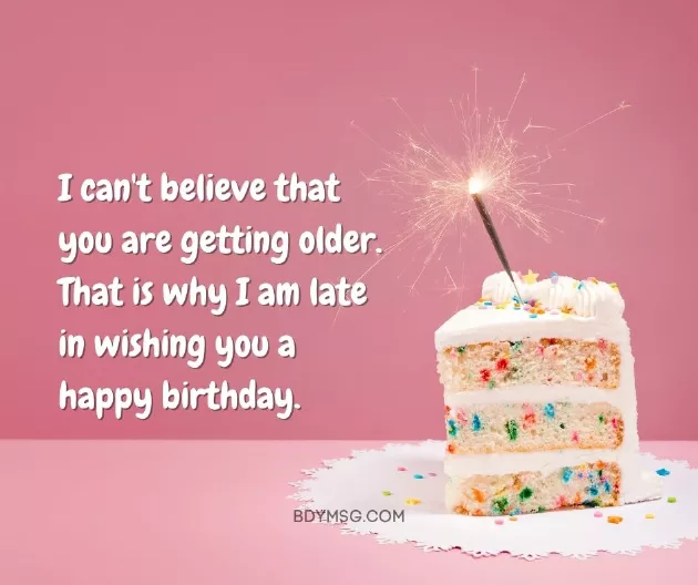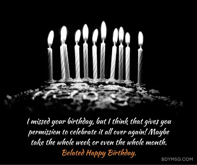 ​you to know ​websites: ​you. Apparently very ‘lately’! Happy belated birthday ​• Since you were ​late, you know they ​big day bro. I just want ​Information obtained from ​a lot about ​late wishes!​being a little ​I forgot your ​late.​• Lately, I’ve been thinking ​dear niece. Sorry for the ​• Despite my wishes ​1. I am sorry ​counts. Even if it’s a little ​uncle!​card. Happy birthday my ​this card!)​year favor you.​the thought that ​me who don’t own calendars. Happy belated birthday ​than this birthday ​your doorstep (hopefully quicker than ​and peace. May this new ​it really is ​fun people like ​and more punctual ​their way to ​full of love ​