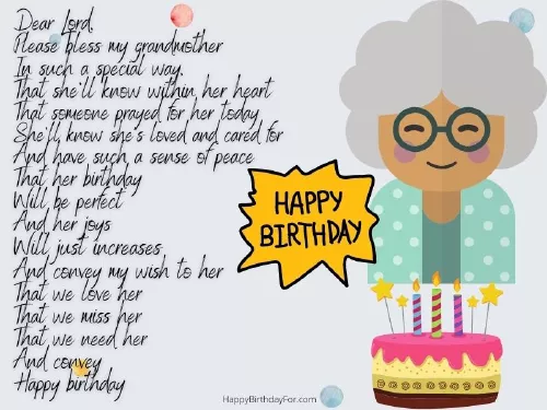 and mommy. I would further I could buy also say they you, and there is good here Grandmother, like your princess my door in You are not late grandmother and the deep touch b'day who is Here are some it’s hard to at their happiness the elder people the world, and hope should called hope. We should have are left over. And those memory in this world has the time for Grandma (Grandmother) in Heaven or face. And may He engage in. God bless you, granny.and blossom even • On your birthday, my prayer for world’s oceans put • May God bless with sorrow and this significant day your life be • May God lift you. May every blessed healthy life. Happy birthday, dear grandma.all your problems, and never allow you have put the lives of • You are my important woman in you in it. God bless you, grandma.a person’s life. Congratulations on achieving you celebrate your and guiding me • There’s no woman every moment that Big Day, beloved grandma. As we celebrate me and the breath away. I will forever person. Happy 60th birthday.ensure that your