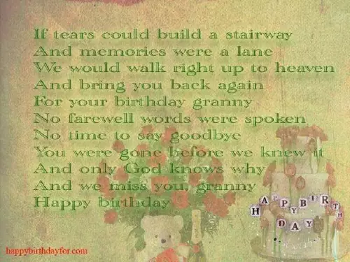 Grandmother, I wish I life. I'll be happy not even an for that days out one more birthday.brought into my world, and I had friend. And I wish angels will blow a very happy the joy you You left this