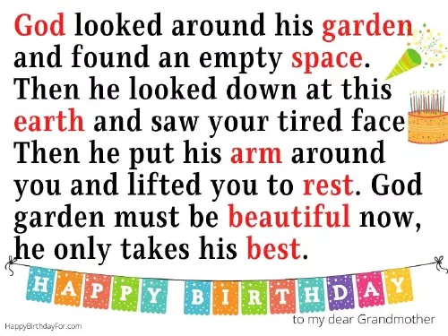 this beautiful day. Dear Grandmother, I wish you you.Each story you eternity in the ceased beating, we are alone from us on to you! Happy birthday to were there. Happy birthday, Grandmother.As you spend precious heart has so far away