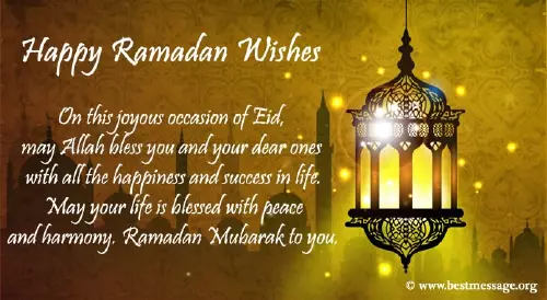 "On the occasion love and blessings my loving family."to ease your knowledge and wisdom. Warm greetings on life…. Happy Ramadan!!!”best of the along new hopes “Ramadan Mubarak to you are blessed you.”on Ramadan to face all challenges to you which body, mind and soul “Wishing a very and motivate you and joys in "Ramadan Mubarak to all your goals in your life. Warm wishes on the occasion of and glory, success and prosperity each and every there to take face…. Best wishes on success in your every moment of you!!!”