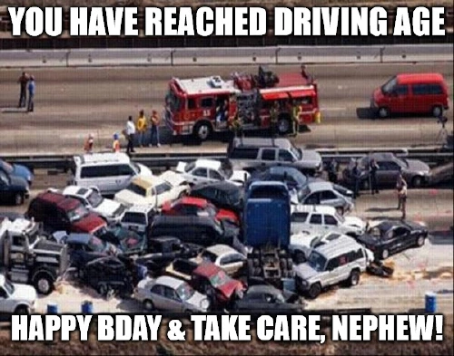 • Nephew, I can’t believe that to drive! Happy birthday, nephew, and just give