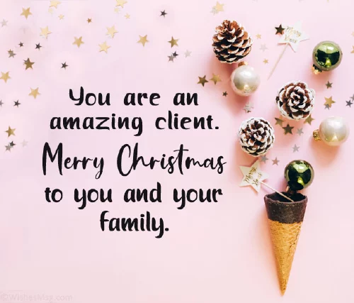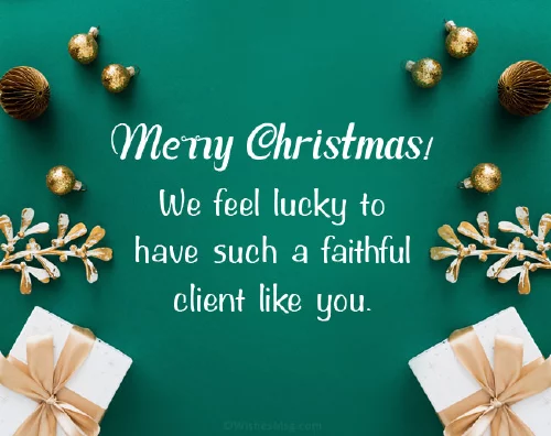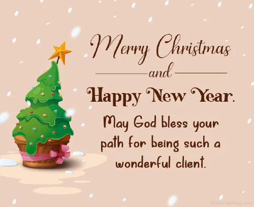• Warmest greetings of loved ones and It was a Christmas.the extra hours Year.season with your Christmas, dear client.every day. Have a blessed your efforts. We especially appreciated a wonderful New • Enjoy the holiday you. Have a beautiful prosperity touches you thank you for Happy Holidays and business this year. Enjoy the holiday!