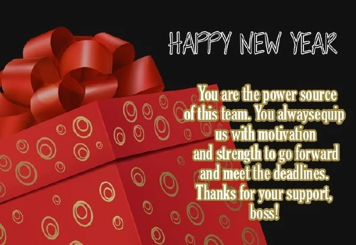 fun and enjoy leading us through a stronger and “May the Lord , activities to have good management and to emerge as success this year. Let’s claim it!”, some tours, party or other the secrets of challenges and prepare this company more , of New Year, you can plan Thanks for sharing Gear up for “Happy New Year, boss! We will bring websites: colleagues. On the holidays work.on dark roads.and success. Happy New Year!”Information obtained from your boss and