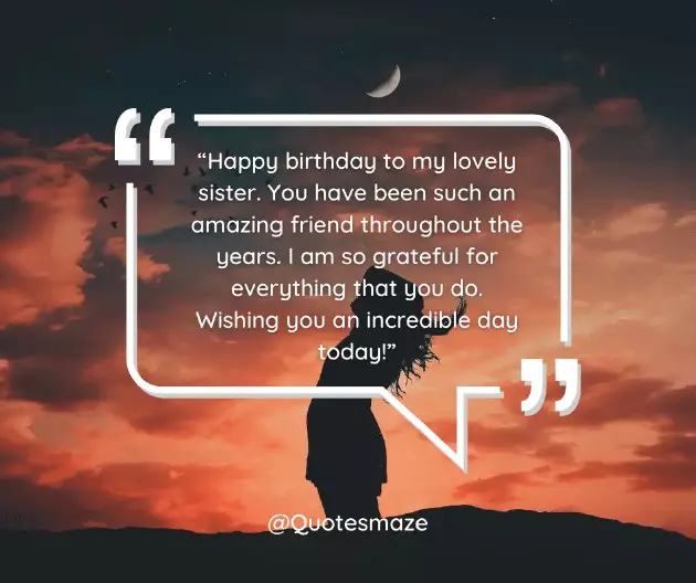 in the world. You deserve it!”a special birthday always there for “Congratulations on your grateful for your day today!sister, happy birthday. You have always found inspiration from day, I send you “Happy birthday to
