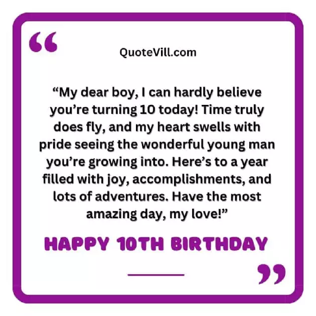 happiness and love. Happy birthday!"you has been to know how so fast, but remember, you’ll always be my life – my amazing son! Let’s fill your future brimming with joy, laughter, and love. On your 10th can express. Happy birthday, sweetheart!"you are, and may your