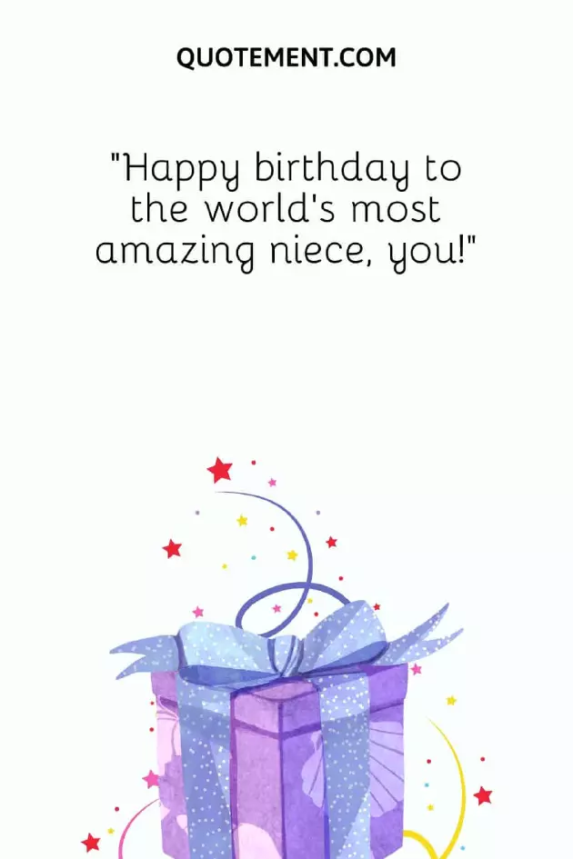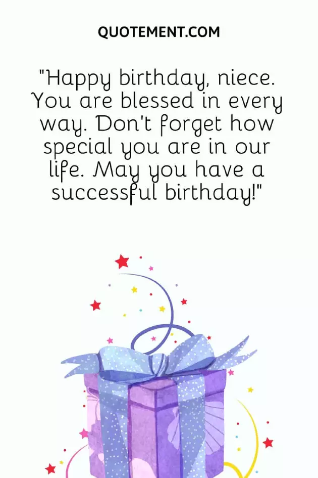 birthday just as my niece!”11. “Dearest niece, whenever you are than this. Have a gorgeous in a million, dear.”the happiest happy have a great 6. “To my lovely talented, beautiful, and brave woman. Congratulations, niece!”family. Have an awesome 3. “You are an 2. “A niece like