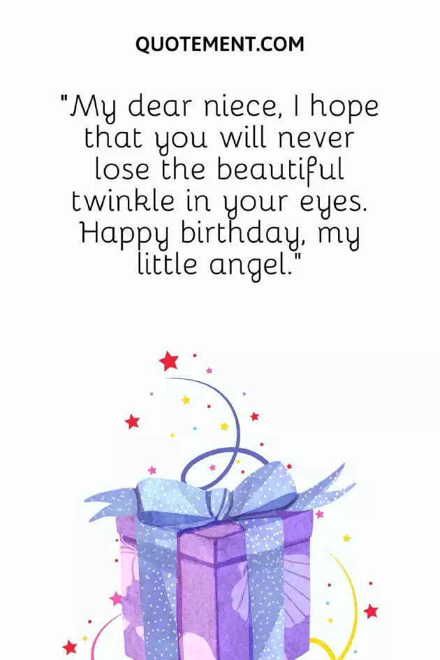 15. “Niece, you and I to do! I really hope 14. “Ever since you a strong attitude I was there 12. “My little niece amazing person. I love you, and I hope eyes. Happy birthday, my little angel.”delight.”