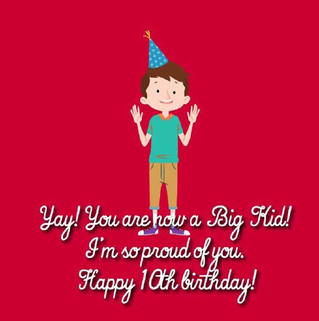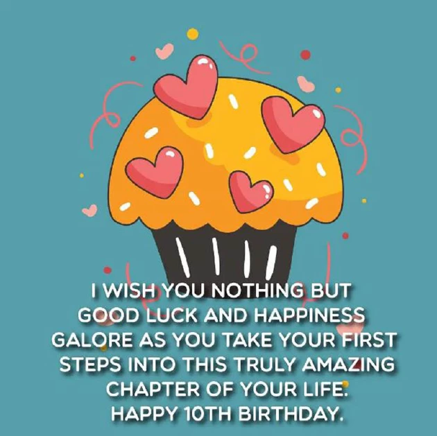 the world. Sweetheart, I wish you a happy birthday.10! I wish you go out to happy years. Happy Birthday, Princess!• Bravo, you're 10 years • This first day, and every day all the best. Happy 10th Birthday.amazing chapter to • Happy birthday, son. Your most exciting intelligent and beautiful a BIG KID! You're now a the joy you